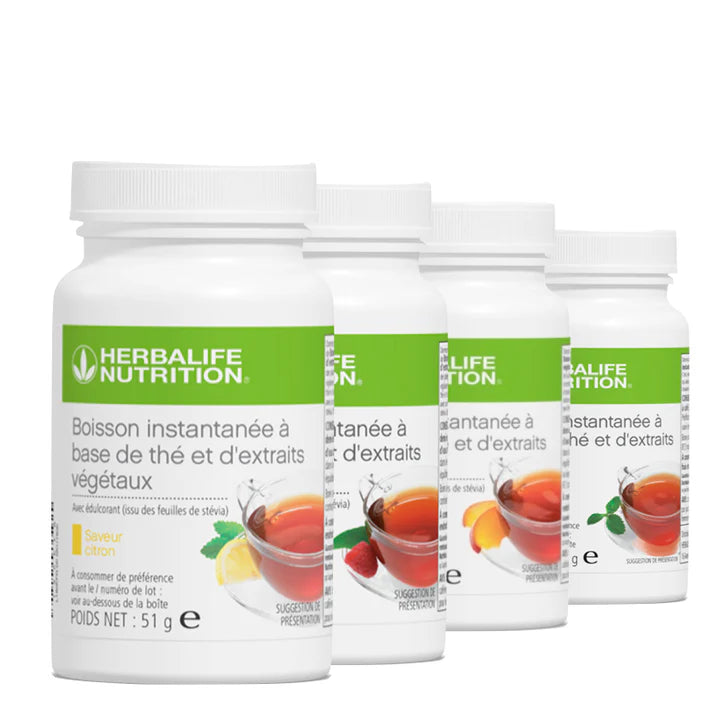 La Boisson instantanée à base de thé et d’extraits végétaux est notre mélange de thé signature. Le choix parfait lorsque vous avez besoin d'une boisson à base de plantes, faible en calories pour donner du peps à votre journée. C'est une boisson rafraîchissante élaborée avec un édulcorant d'origine naturelle issu des feuilles de stévia. Infusée avec des extraits de feuilles de thé vert et orange pekoe, de l’extrait de graines de cardamome et de la poudre de fleur d'hibiscus.